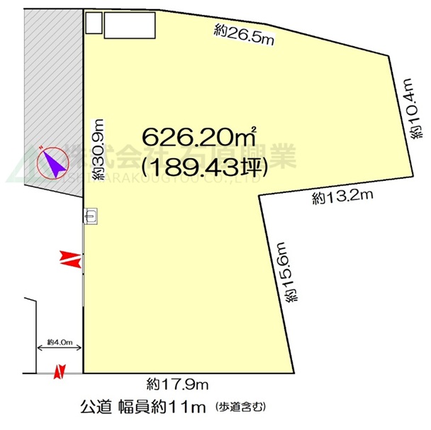 道路種別 : 公道 / 方向 : 南 / 幅員 : 11m |