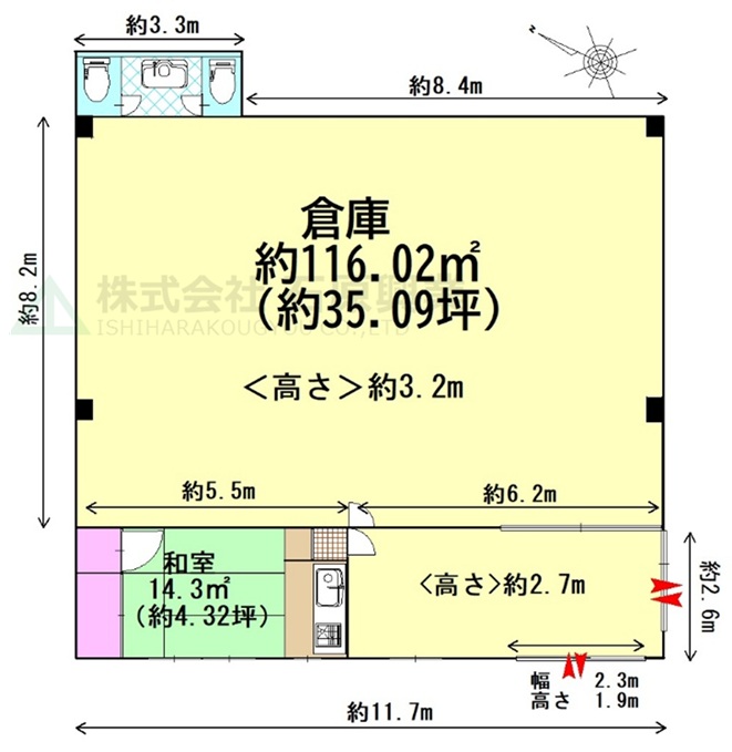 | 備考 | ■業種により保証金の変動有 ■駐車スペース有!敷地入口約4.3m! ■構造:鉄骨造木造陸屋根2階建 ■天井高:作業所部分約3.2m、事務所部分約2.7m ■建物内禁煙! |