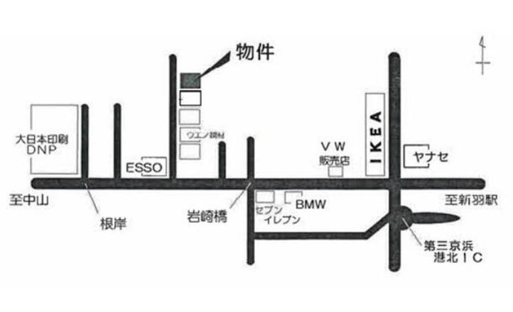 横浜市営ブルーライン 新羽 根岸前(所要時間 :13 分 )バス停まで徒歩 7 分
