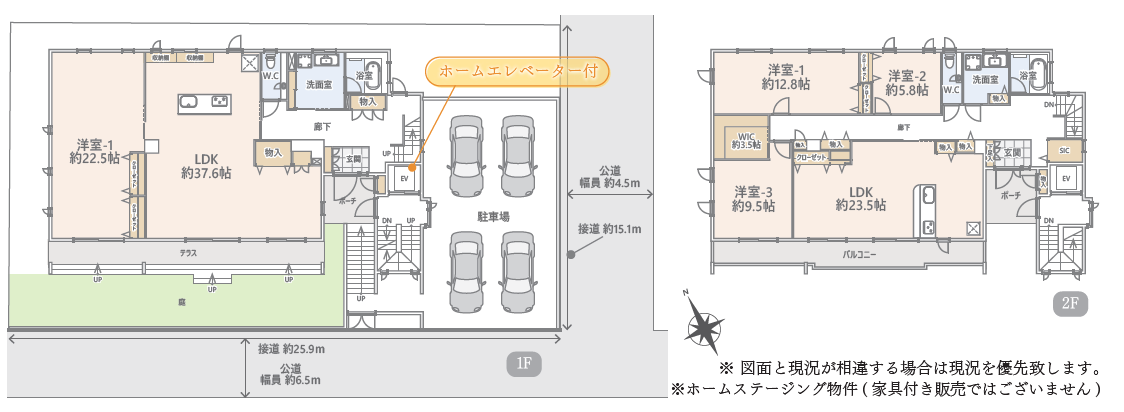 | 設備・条件等 | 間取り:1LDK+3LDK+WIC・EV付き 面積:1階153.16㎡ 2階151.88㎡ 合計305.04㎡ ※2世帯住宅としてもご利用可 |
