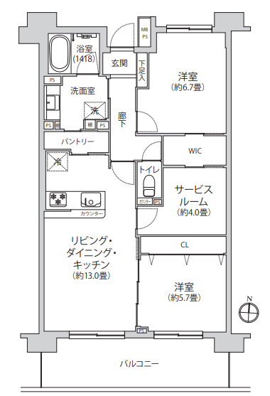 | 専有面積 | 70.20㎡ / 21.24坪 | バルコニー面積 | 13.1㎡ | ||