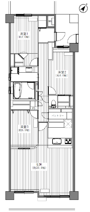 | 備考 | □ 角住戸のフルリノベーション物件! □ 南東・北西の両面バルコニーにつき、陽当たり・風通し良好! □ご家族に嬉しい収納豊富な間取です! |