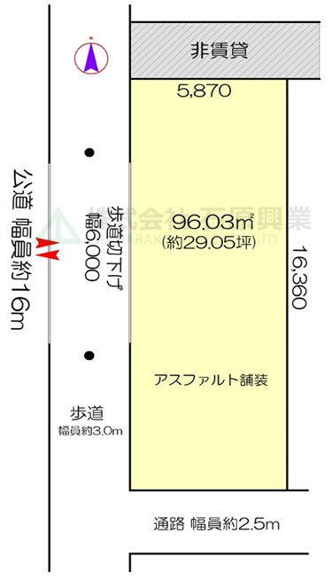 道路種別 : 公道 / 方向 : 西 / 幅員 : 16m |