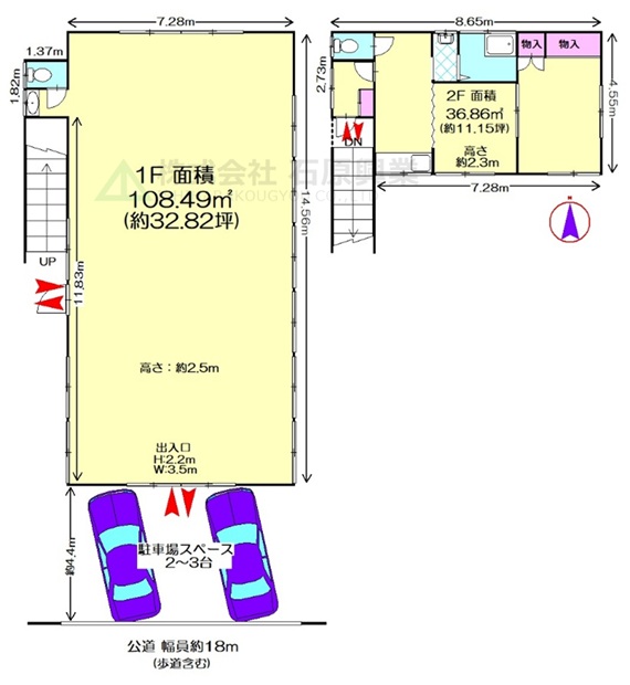 | 備考 | ■1階:108.49㎡(約32.82坪)/2階:36.86㎡(約11.15坪)/延床:145.35㎡(約43.97坪) ■業種により保証金の変動あり |