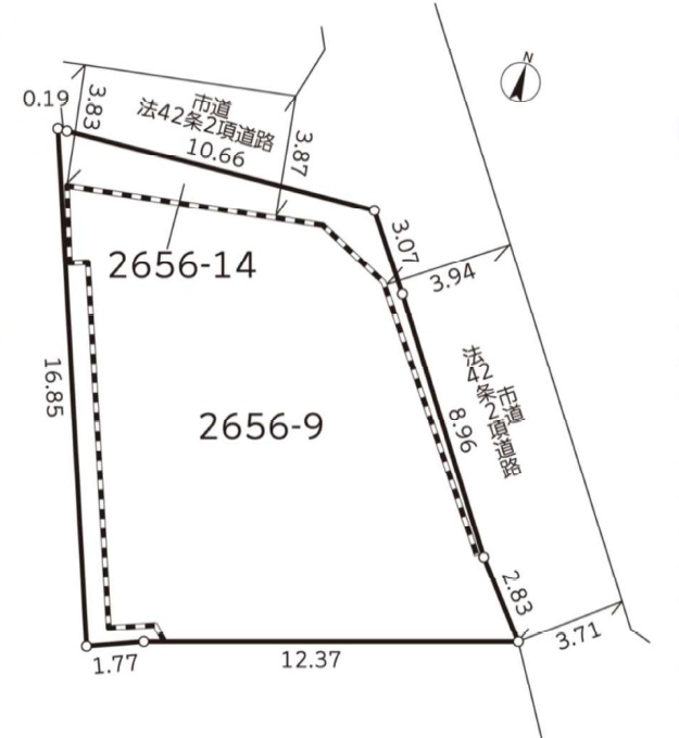 道路種別 : 公道 / 方向 : 東 / 幅員 : 3.8m 接道2道路種別 : 公道 / 方向 : 北 / 幅員 : 3.8m |
