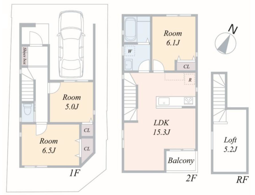 | 備考 | 建築確認番号:第25KAK建変00101号 延べ床面積:91.09㎡(27.55坪)<内車庫13.53㎡>、他ロフト8.48㎡ 敷地面積:84.55㎡(25.57坪)、他セットバック1.15㎡、他持分0.78㎡ |
