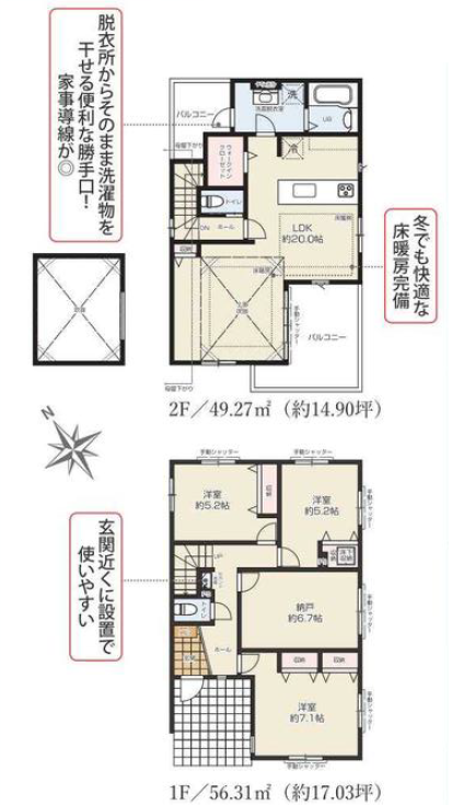| 備考 | 建築確認番号:第24UDI1W建11667号 1階56.31㎡(約17.03坪)、2階49.27㎡(約14.90坪) |