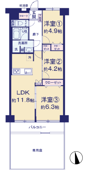 | 専有面積 | 64.40㎡ / 19.48坪 | バルコニー面積 | 6.72㎡ | ||