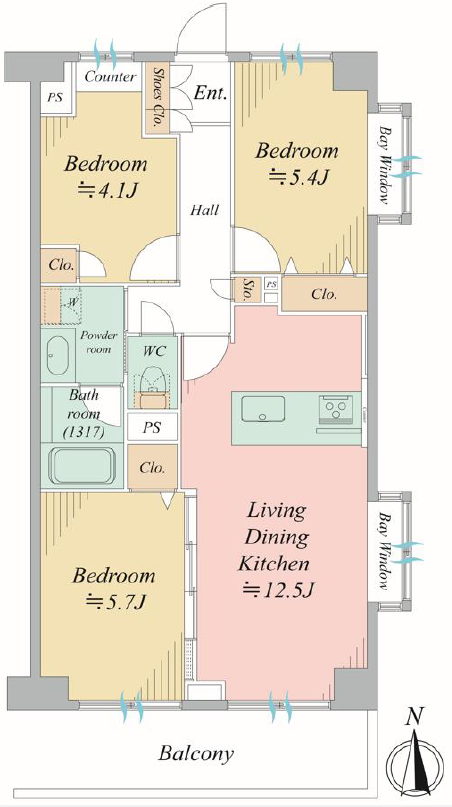 専有面積 | 62.16㎡ / 18.8坪 | バルコニー面積 | 8.16㎡ | ||