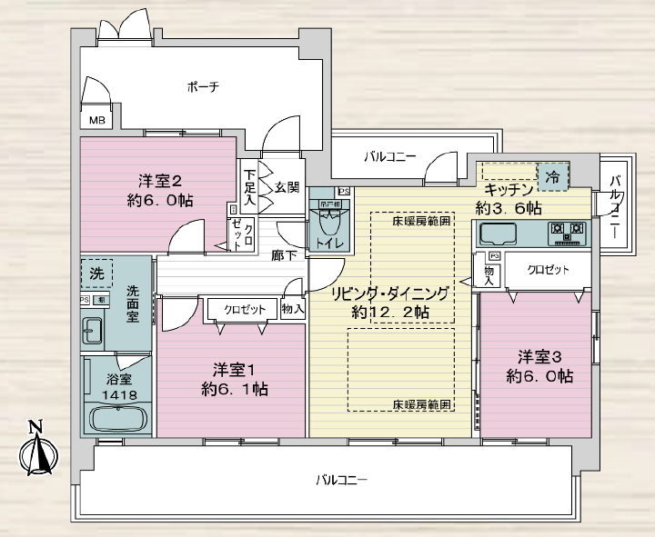 ·各居室約6.0帖以上でしっかりとスペースを確保