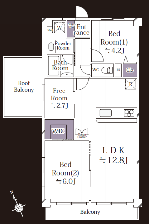 | 専有面積 | 60.11㎡ / 18.18坪 | バルコニー面積 | 6.06㎡ | ||